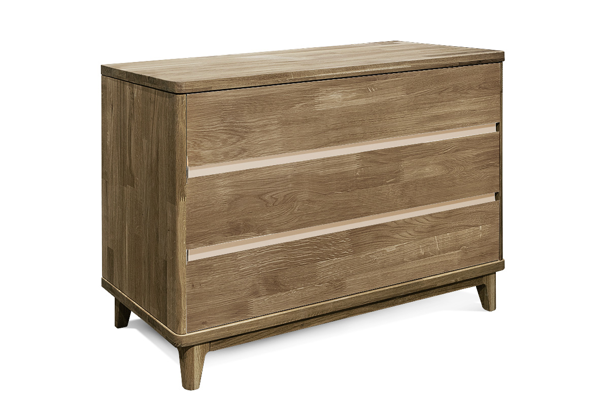 ✅ Комод изготовлен из комбинации материалов - массива дуба и эмали. Из массива дерева изготовлен корпус комода, фасады в цвете «бейц-масло».