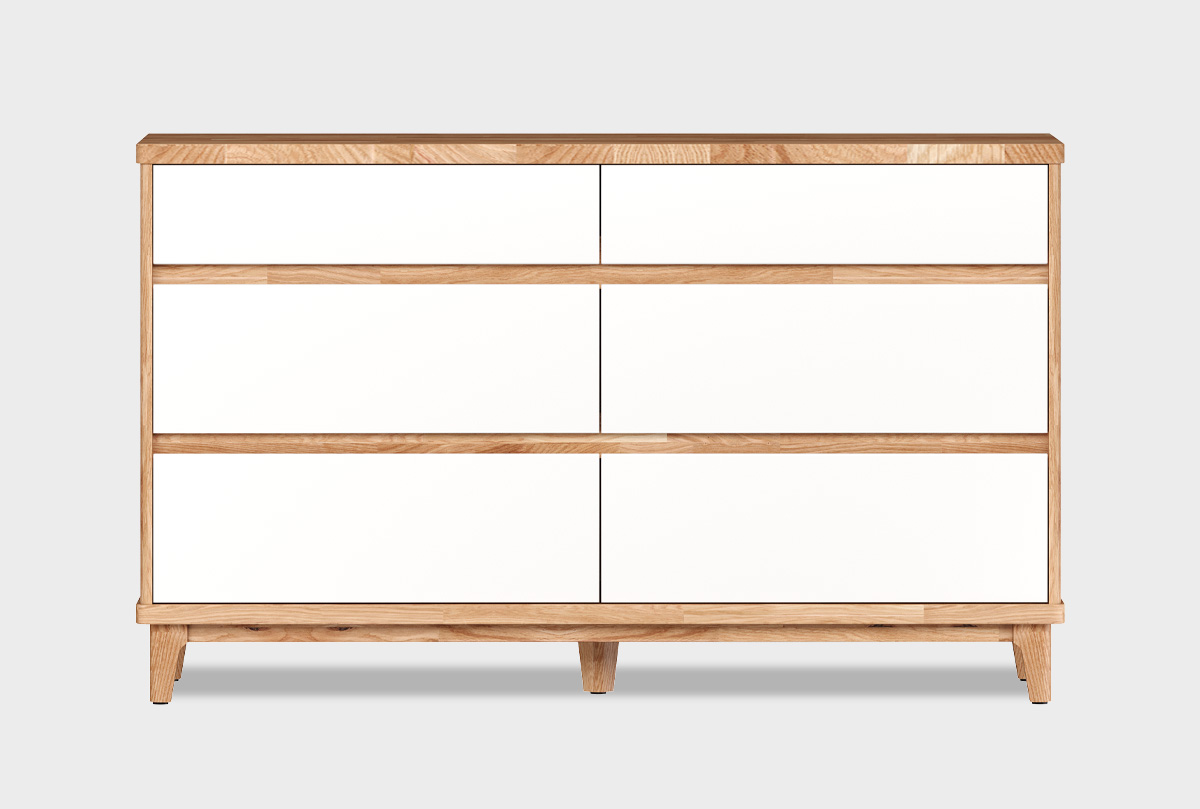 Широкий комод Wallstreet в цвете «к-бейц-масло, ф-белый, вст-бейц-масло» для спальни из натурального дуба.