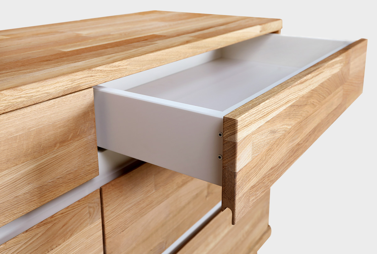 ✅ Комод изготовлен из комбинации материалов - массива дуба и эмали. Из массива дерева изготовлен корпус и фасад комода.