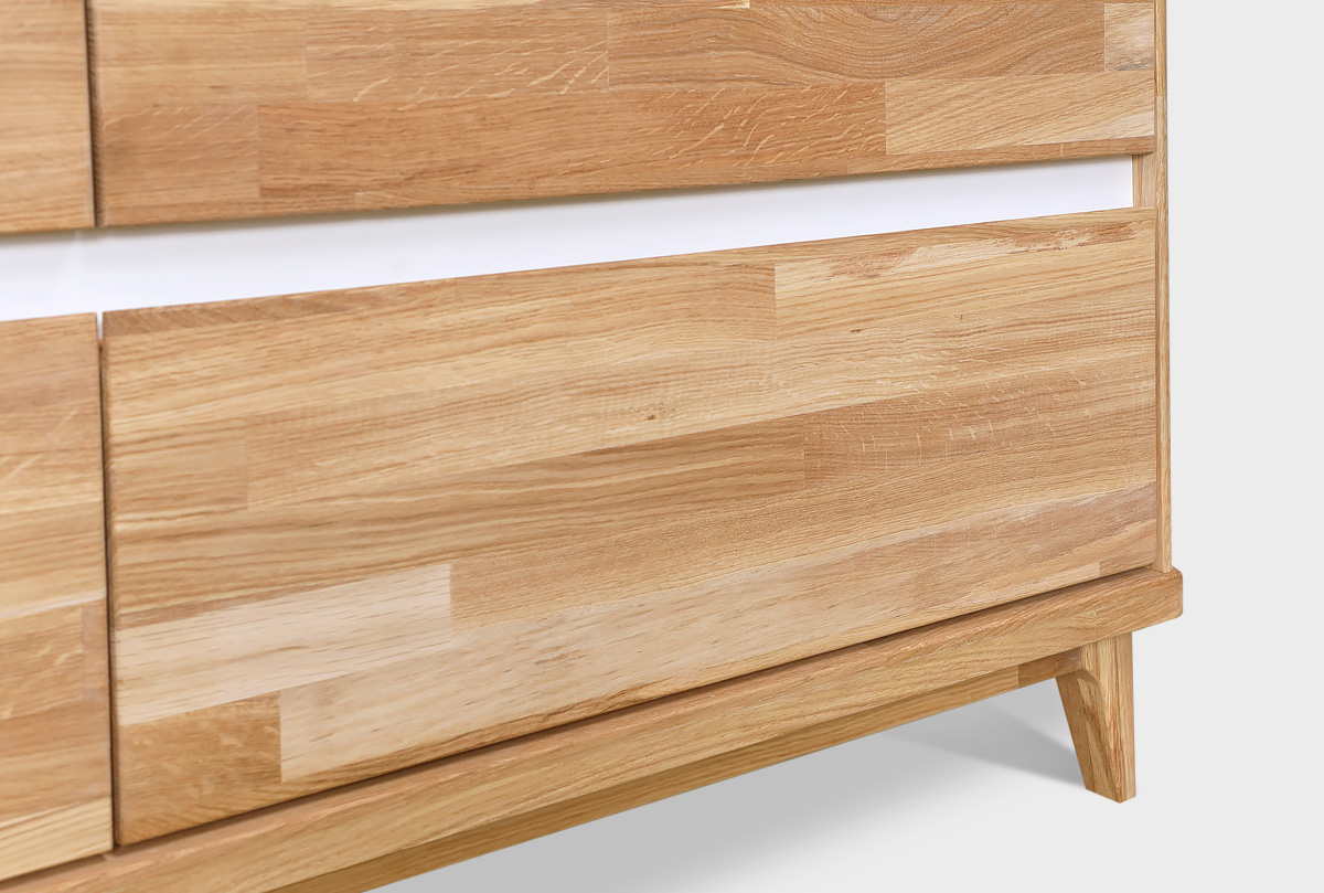 Широкий комод Wallstreet в цвете «к-бейц-масло, ф-бейц-масло, вст-белый» для спальни из натурального дуба.