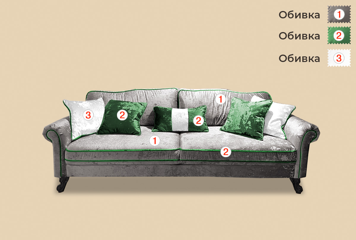 ✅ Каркас выполнен из массива, а также деталей из древесных плит. Диван установлен на опорах из массива древесины.