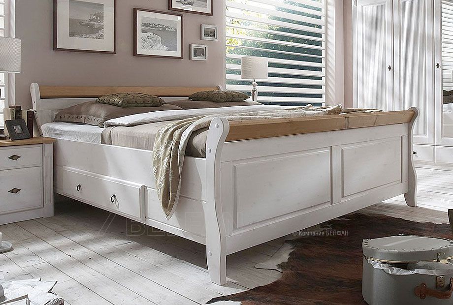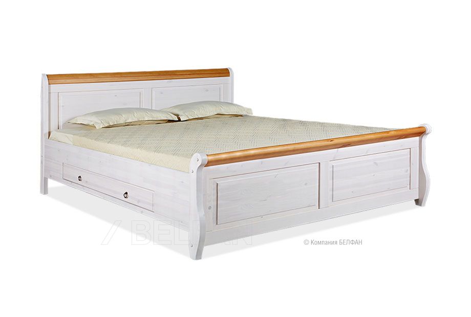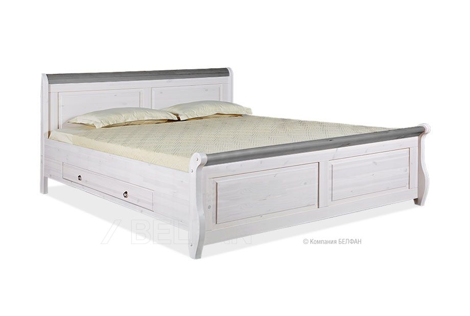 Кровать двуспальная "Мальта-М" 160 (с ящиками), белый воск, без основания, без матраса, (.Г000008013)