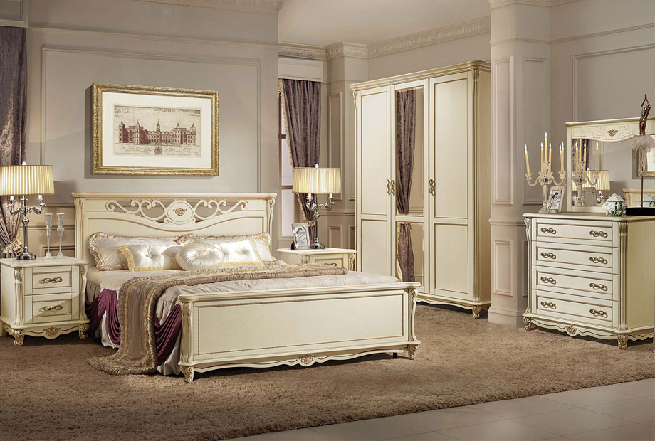 * Цвет Кровати «Слоновая кость с золочением» - Цвет Бельевого ящика «Поры дерева», «Белый фоновый 999»