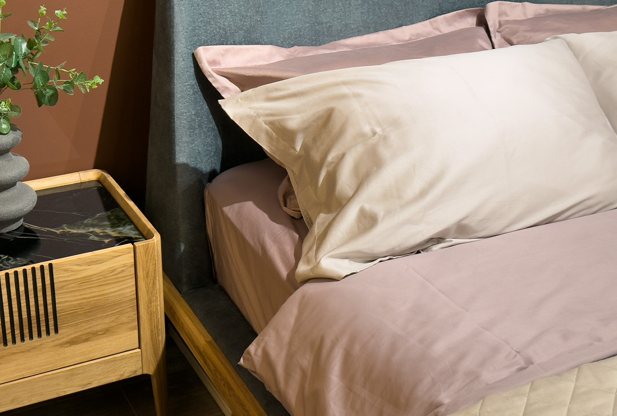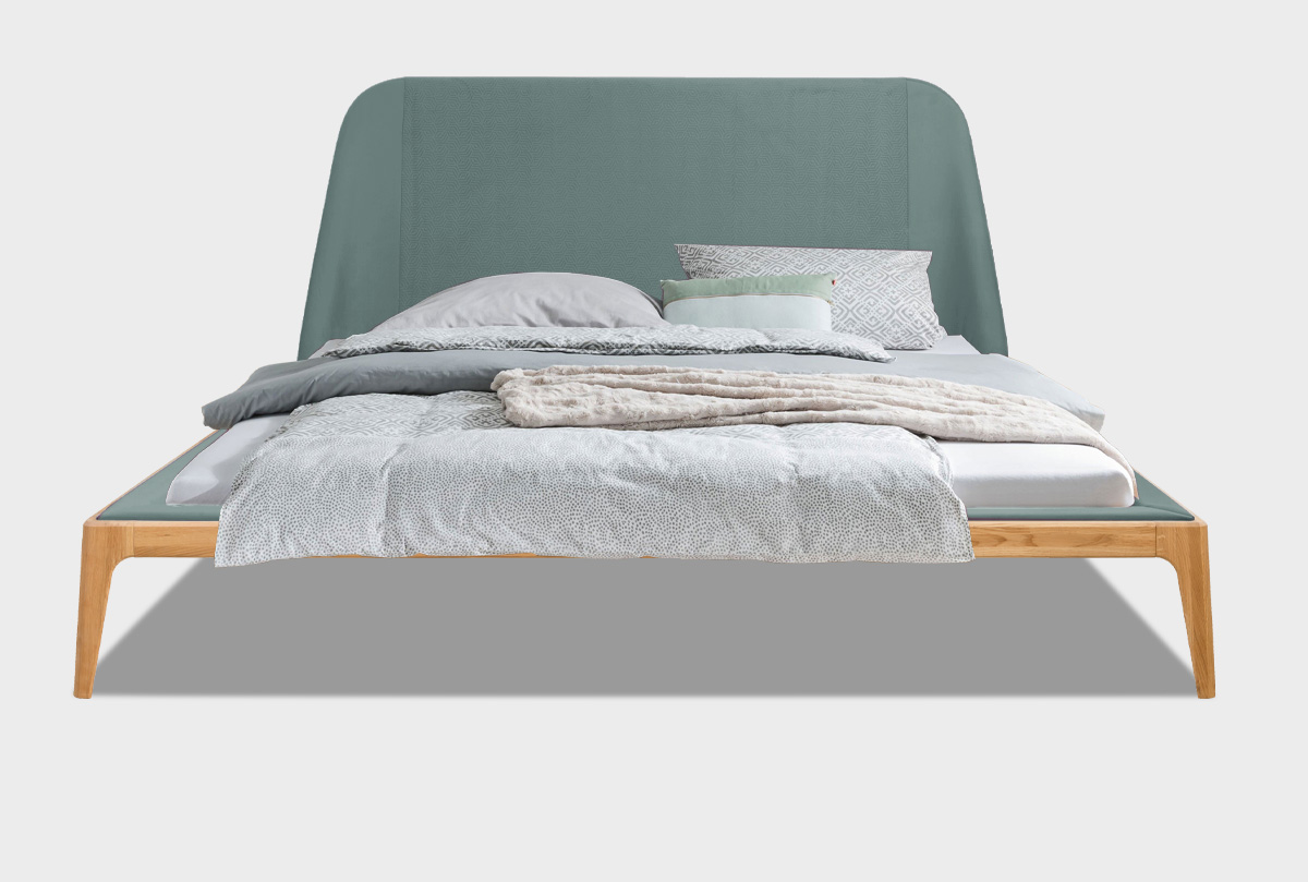 Кровать "Bergamo" (мягкое изголовье), дуб натуральный, Infinity 13 Jadeite, без основания, без матраса, (.Г000085995)