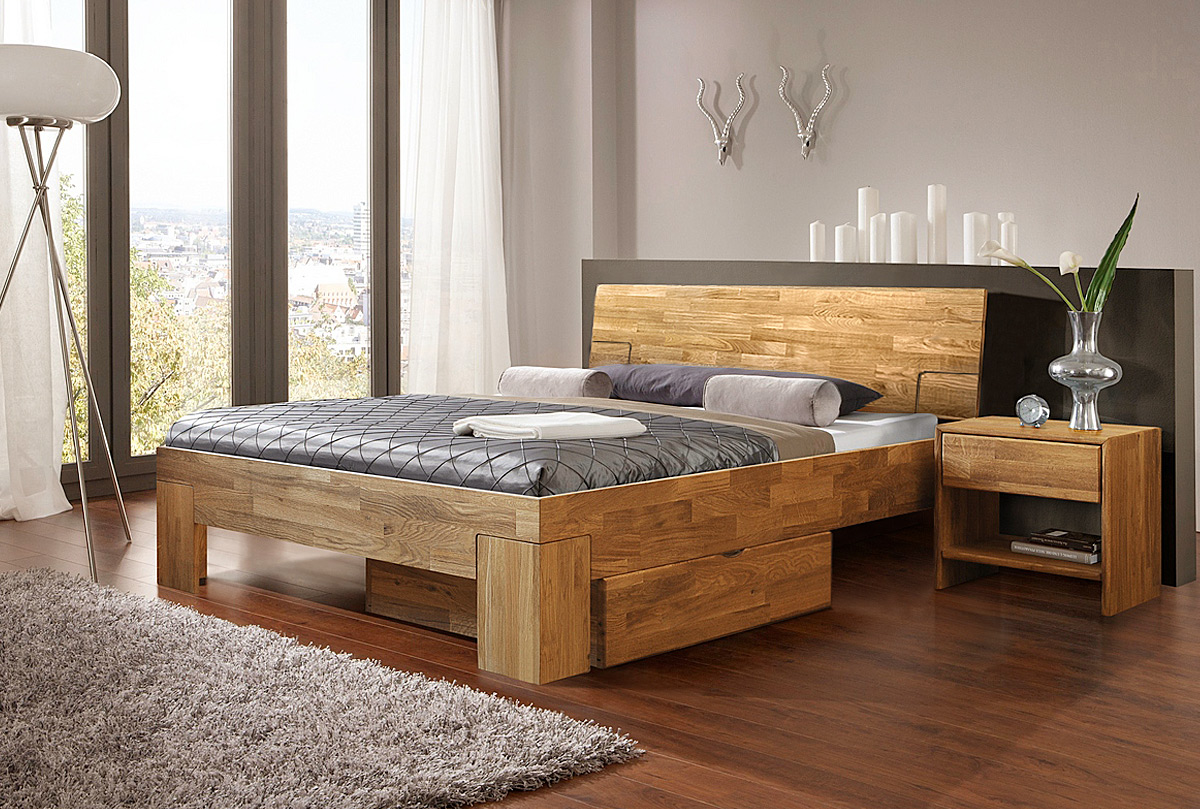 Двуспальная деревянная кровать «Берген» (Bergen) С 180 в цвете «бейц-масло» сделана из брусков массива дуба, которые специально не подбирались по рисунку. Кроме того, натуральная древесина пропитана исключительно бейц-маслом, защищающим ее от влаги, УФ-излучения и различных загрязнений. Низкое изножье позволяет подойти к кровати с трех сторон, а невысокая спинка дает возможность поставить кровать в помещении с ограниченной высотой потолков, к примеру, в мансарде. Чистота линий и материалов должна поддерживаться чистотой в помещении: этого легко достичь, благодаря высоте ножек кровати, которая позволяет без трудностей проводить влажную уборку. Двуспальная кровать подходит как для спальни, а односпальная кровать для детской или подростковой комнаты.