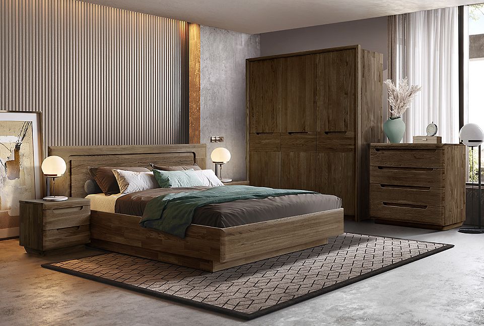 Кровать «Bremen» смотрится монументально и в то же время уютно. Идеальна для тех, кто выбирает натуральность, устойчивость и глубокий визуальный ритм.