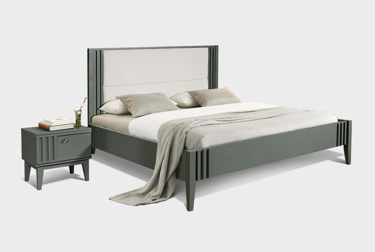 Кровать "Chicago" в цвете "платина" со спальным местом шириной 160 см и с мягким изголовьем.