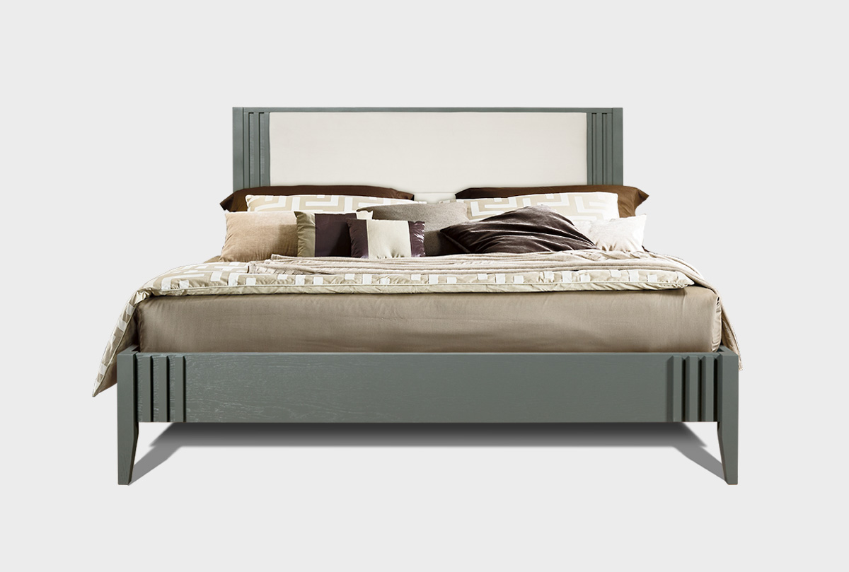 Кровать "Chicago" в цвете "платина" со спальным местом шириной 160 см и с мягким изголовьем.