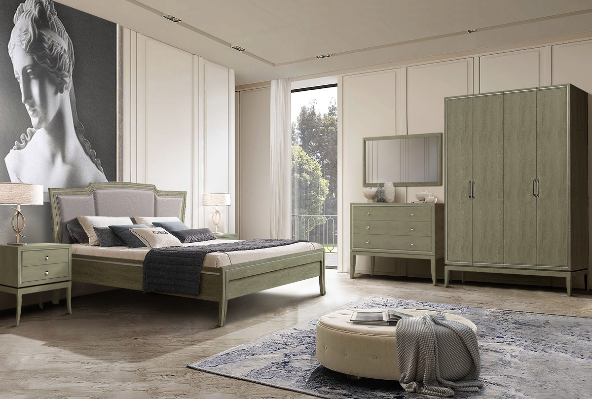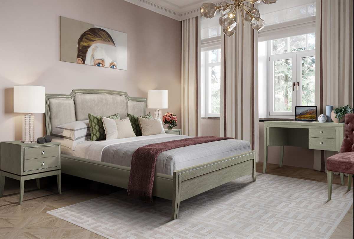 Изысканная кровать из коллекции «Costa» выполнена в современном классическом стиле. Мягкое изголовье, обитое нежнейшей тканью, высокие гнутые ножки, эксклюзивное глубокое крашение «олива» с отделкой белой патиной, все это превращает кровать в уникальный предмет интерьера и любимое место в каждой спальне.