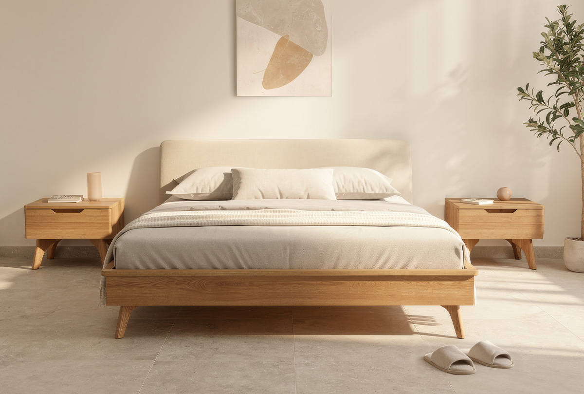 ✅ Высота ножек из массива дуба позволяет легко проводить влажную уборку, а чистота и свежесть в спальне очень важны.