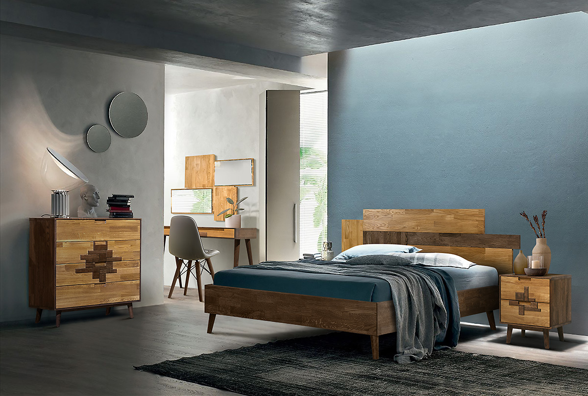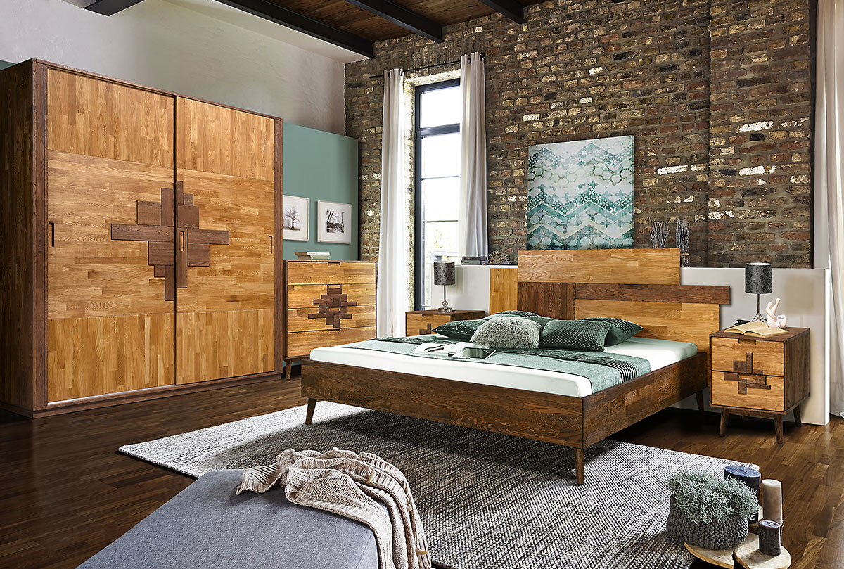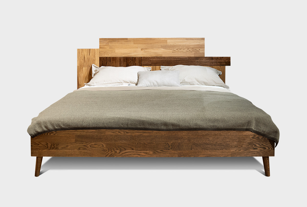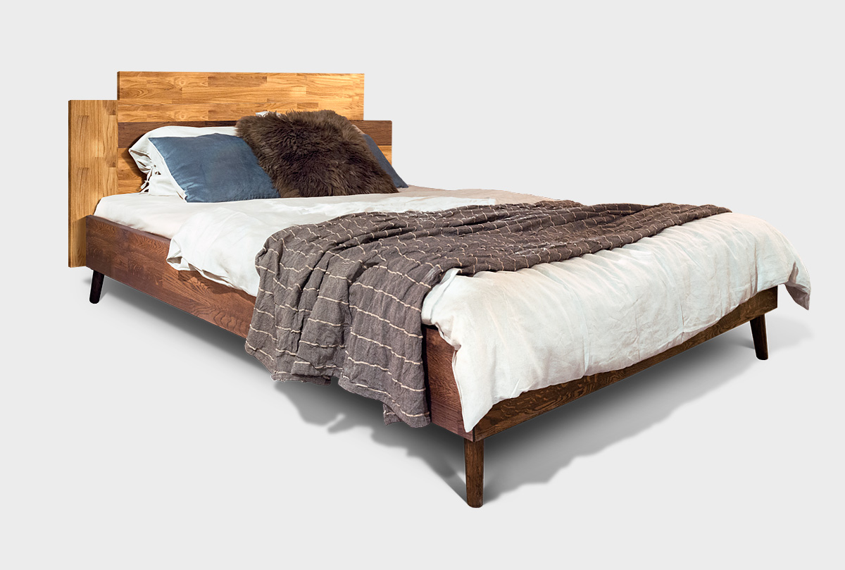Двуспальная деревянная кровать из массива дуба Irving Design («Ирвинг дизайн»), спальное место 140 х 200 см в цвете «графит, бейц-масло» .