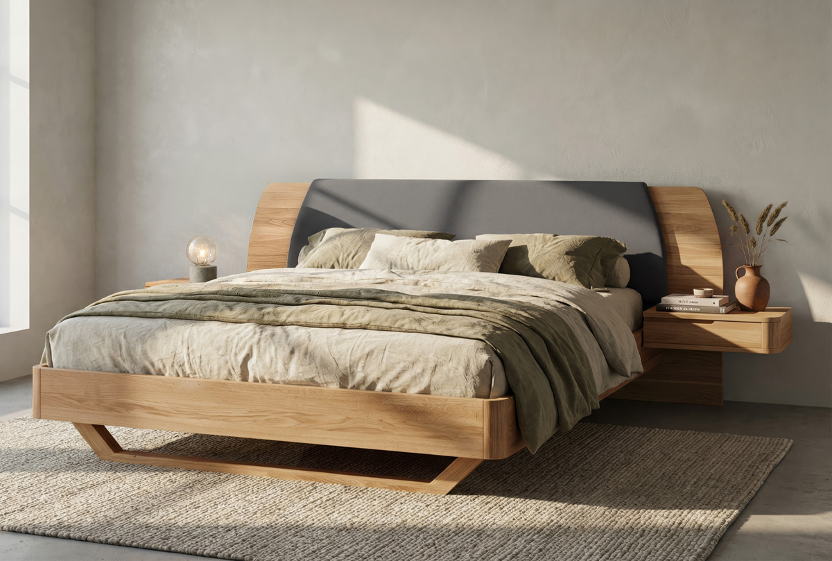 Кровать "Монблан" (с прикроватными тумбами), бейц-масло, Enjoy 24 Graphite, без основания, без матраса, (.Г000089207)