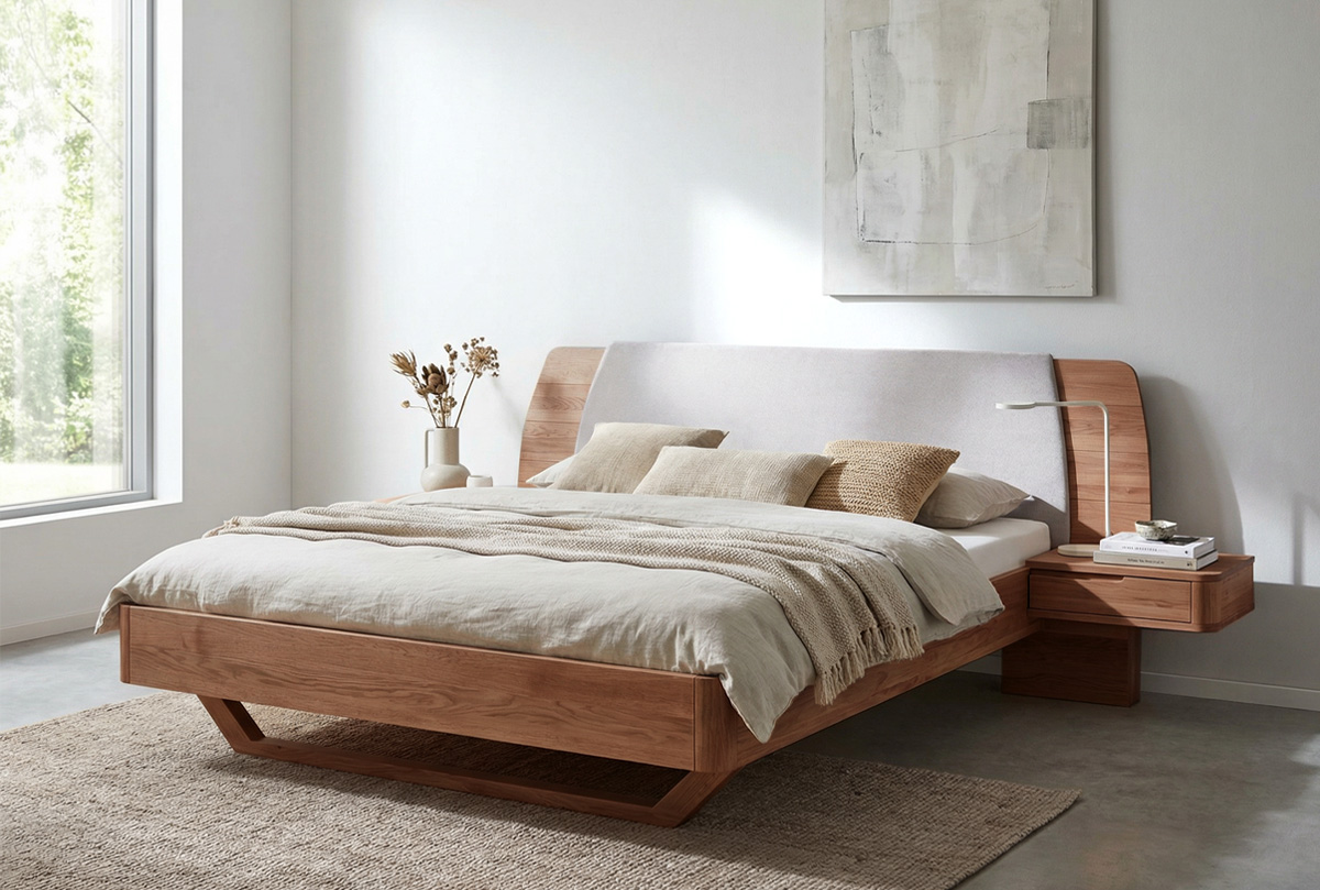 Кровать "Монблан" (с прикроватными тумбами), американский орех, Enjoy 20 Silver, без основания, без матраса, (.Г000092186)