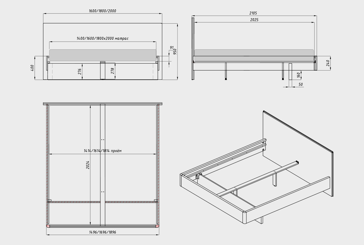 ✅ Кровать не комплектуется ортопедическим основанием и матрасом, следовательно, можно подобрать его индивидуально под запрос, учитывая степень жесткости и нагрузку.