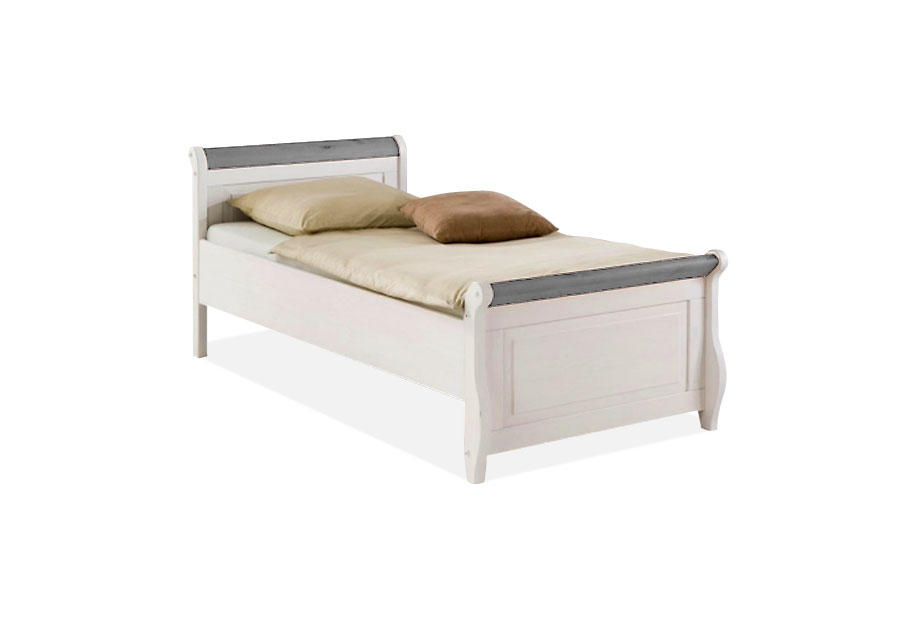 Кровать односпальная "Мальта" (без ящиков), белый воск + серый, (.Г000013772)