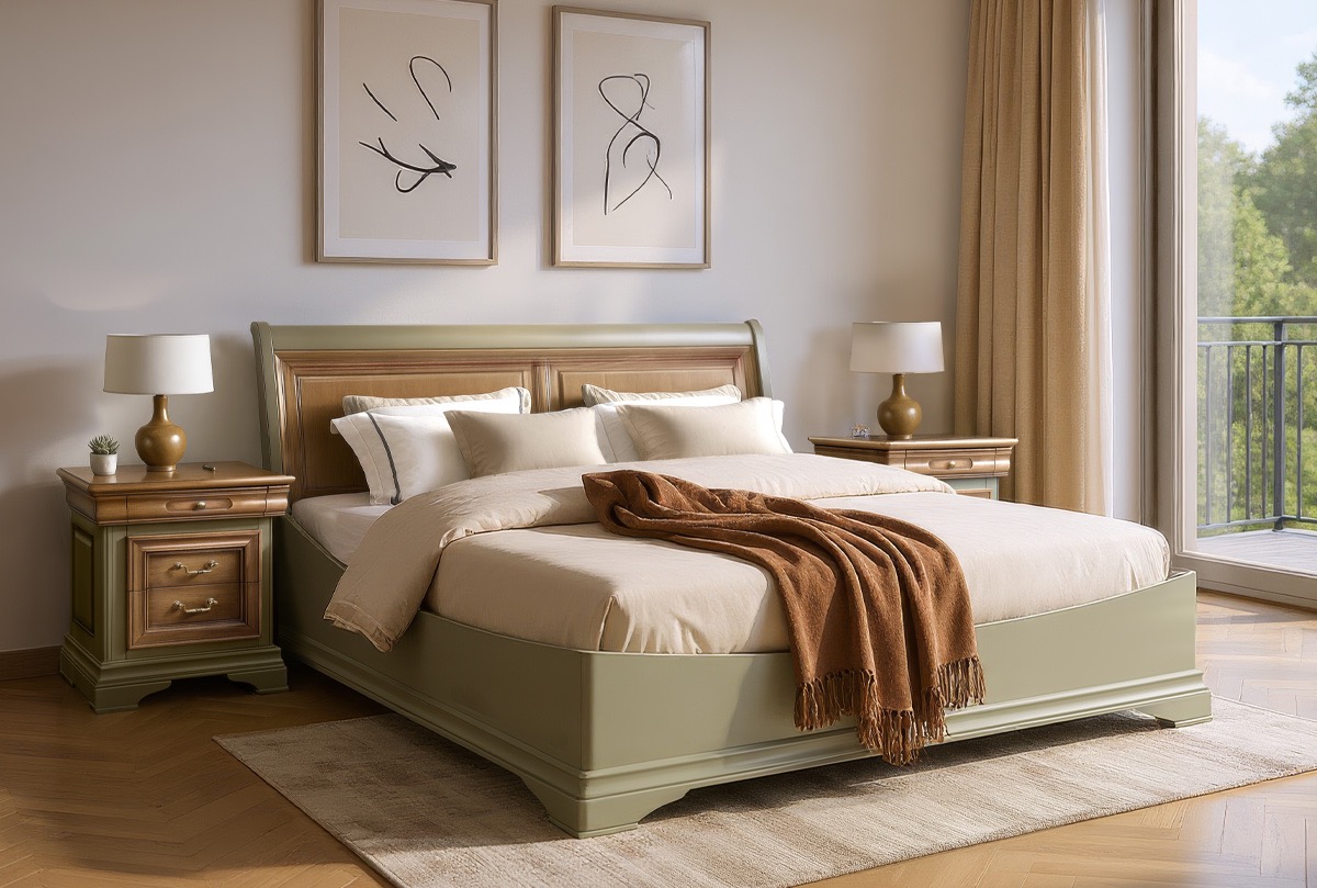 ✅ Кровать изготовлена из массива и шпона ольхи.