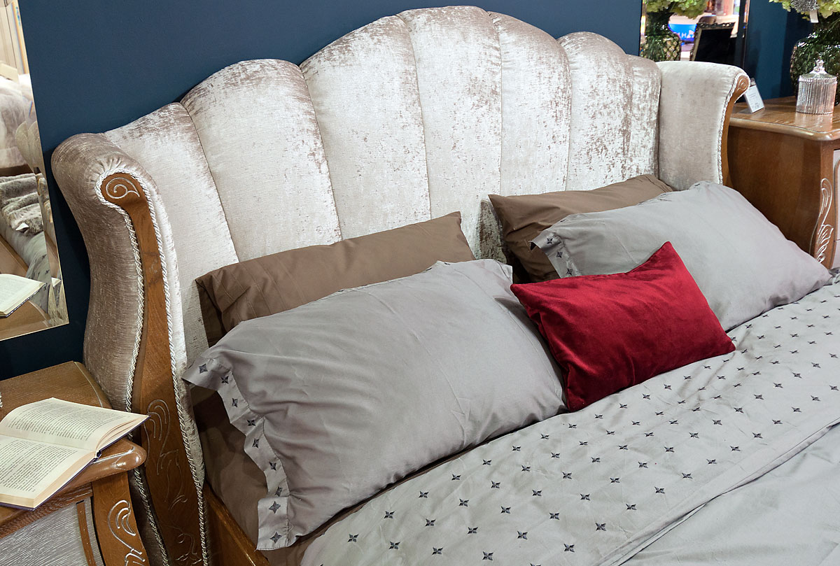 Кровать с мягким изголовьем (осн. дер) "Трио", коньяк с серебряной патиной+серебро; И-11, (.Г000031808)