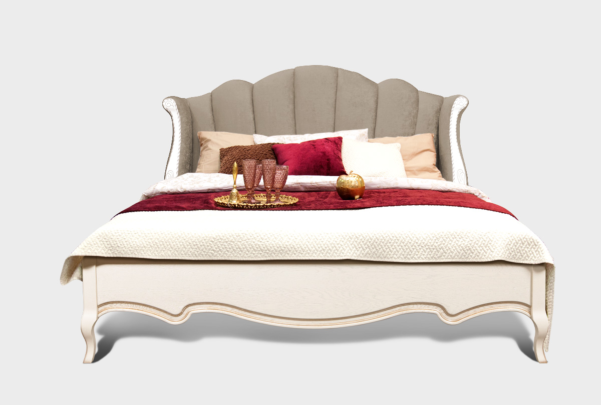 * Цвет Кровати «Белая эмаль с золотой патиной» - Цвет Бельевого ящика «Поры дерева», «Белый фоновый 999».