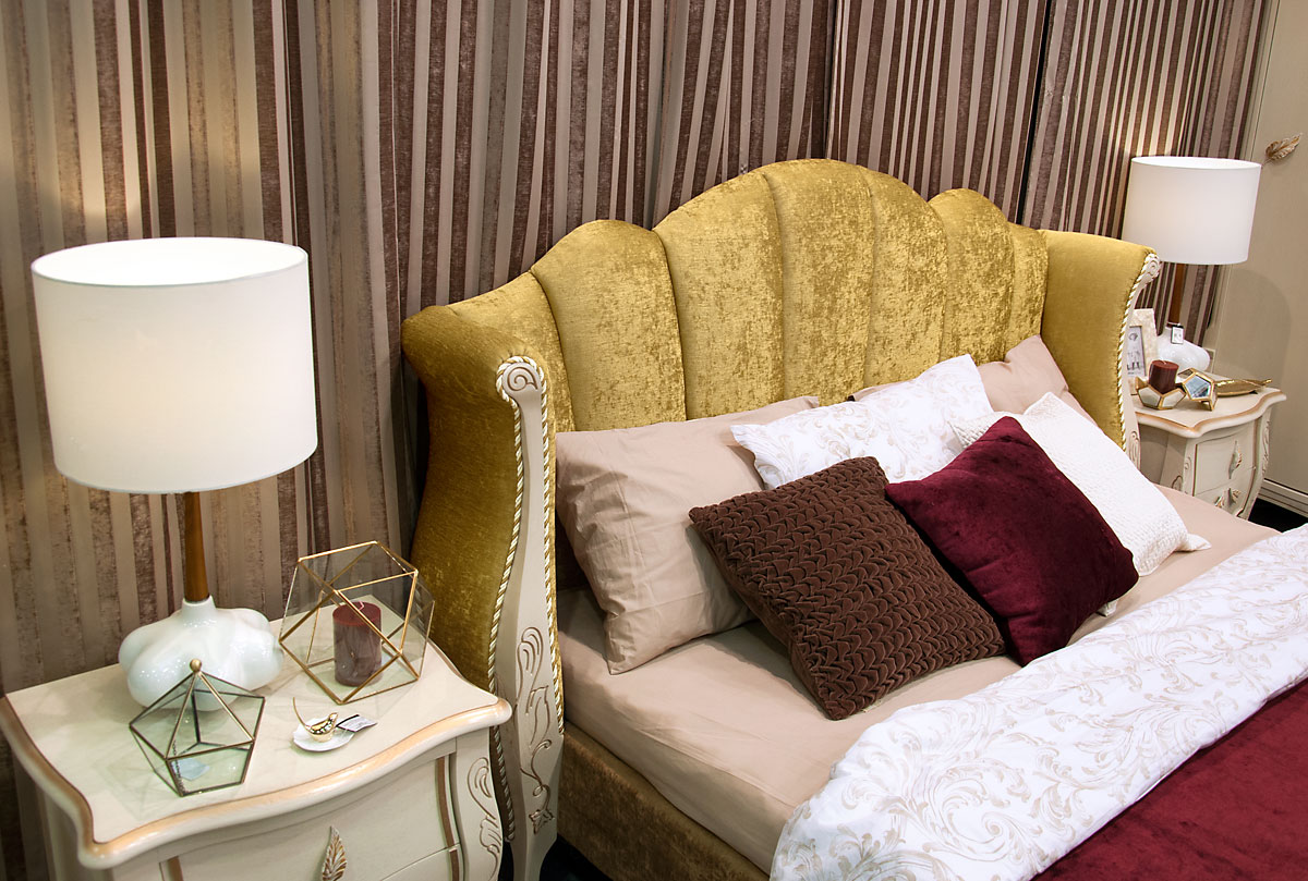 * Цвет Кровати «Белая эмаль с золотой патиной» - Цвет Бельевого ящика «Поры дерева», «Белый фоновый 999».