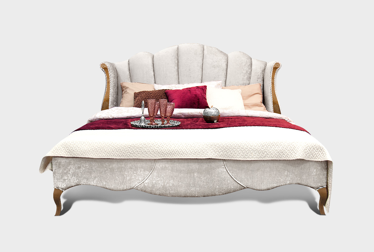 Кровать с цветом корпуса "коньяк с серебряной патиной+серебро" с мягким изголовьем (основание обито тканью И-11) «Трио» (Trio). Спальное место 1800x2000 мм.