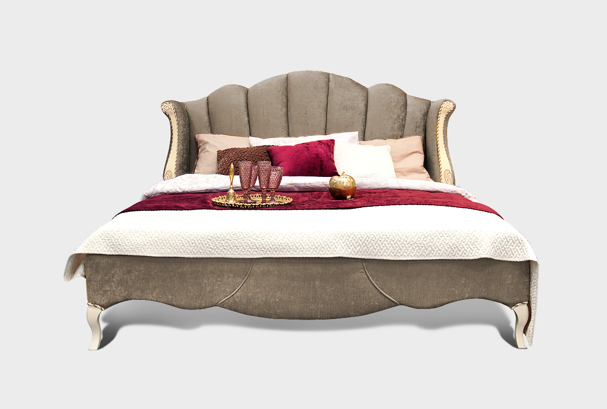 Кровать с цветом корпуса "белая эмаль с золотой патиной" с мягким изголовьем (основание обито тканью Missoni 01) «Трио» (Trio). Спальное место 1800x2000 мм.