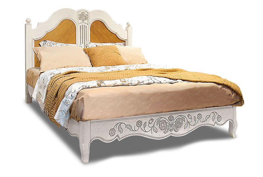 Общей концепции коллекции, созданной в стиле старого Прованса, соответствует односпальная кровать «Шамбор» 160. Предложенные в ассортименте цвета позволят создать в спальне атмосферу лета и тепла. Дубовый массив состарен естественным путем и может быть по желанию окрашен в один или два предложенных цвета (это не повлияет на стоимость изделия). Высокая спинка гордится по-королевски фигурной рамкой, а низкое изножье позволяет без труда подходить к кровати с трех сторон.