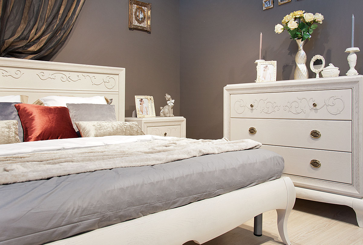 ✅ Высота фигурных ножек из массива дуба позволяет легко проводить влажную уборку, ведь чистота и свежесть в спальне очень важны.