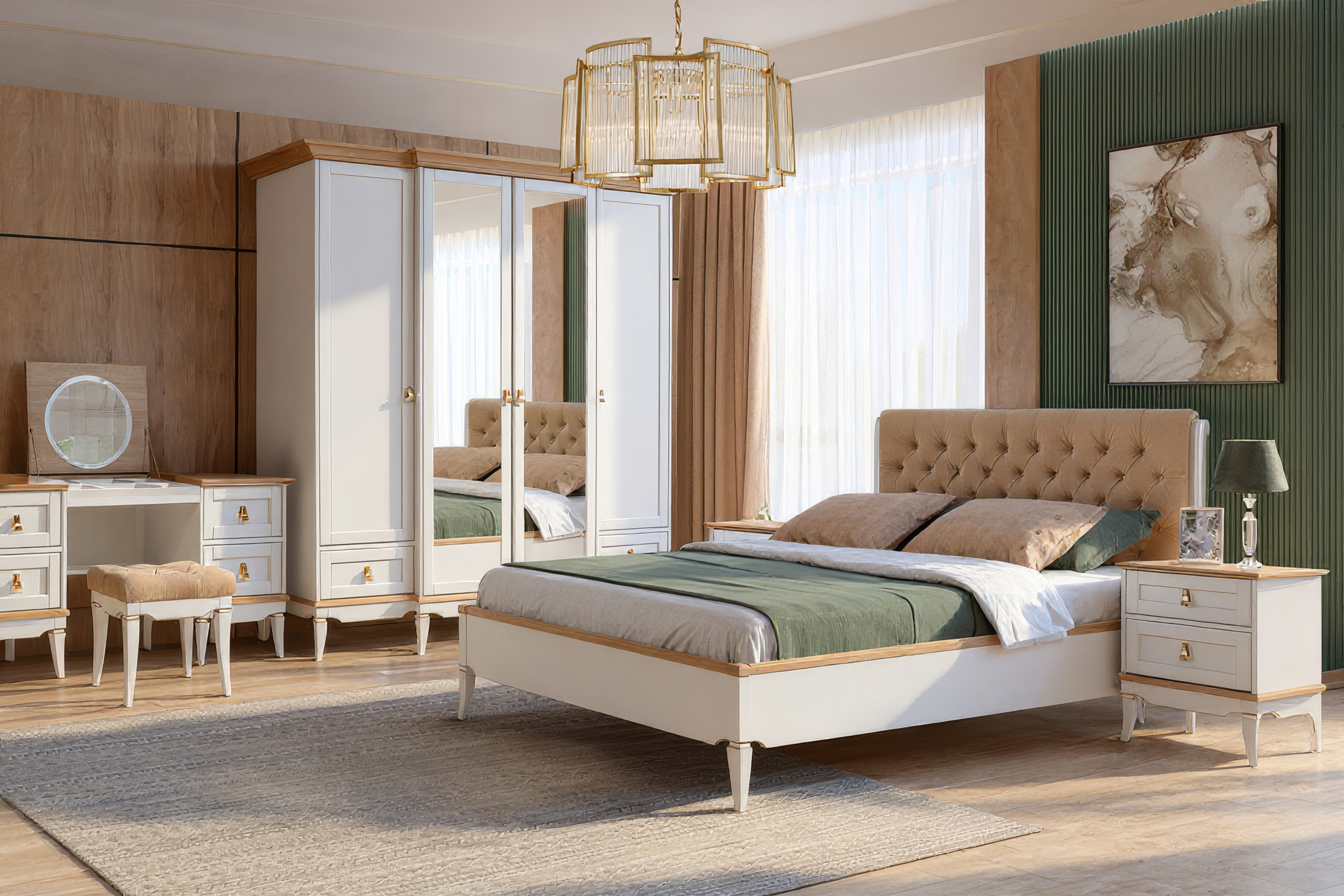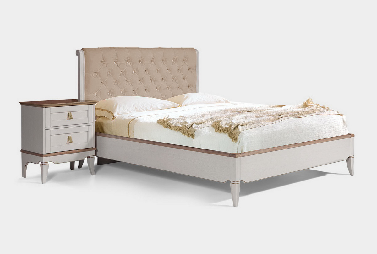 Кровать "Стюарт" 160 с мягким изголовьем, в цвете "персидский жемчуг, натуральный дуб" для Вашей спальни в классическом стиле.