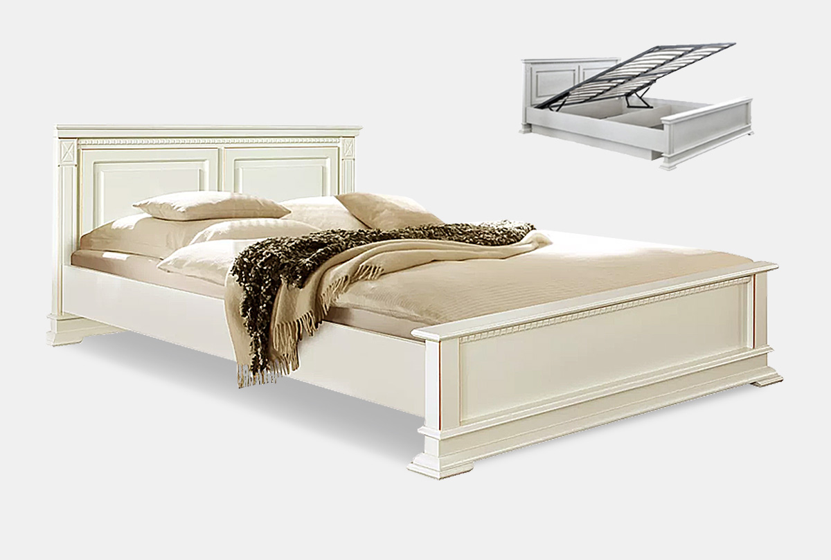 Кровать "Верди Люкс" (низкое изножье) с подъемным механизмом, слоновая кость с золочением, (.Г000068223)