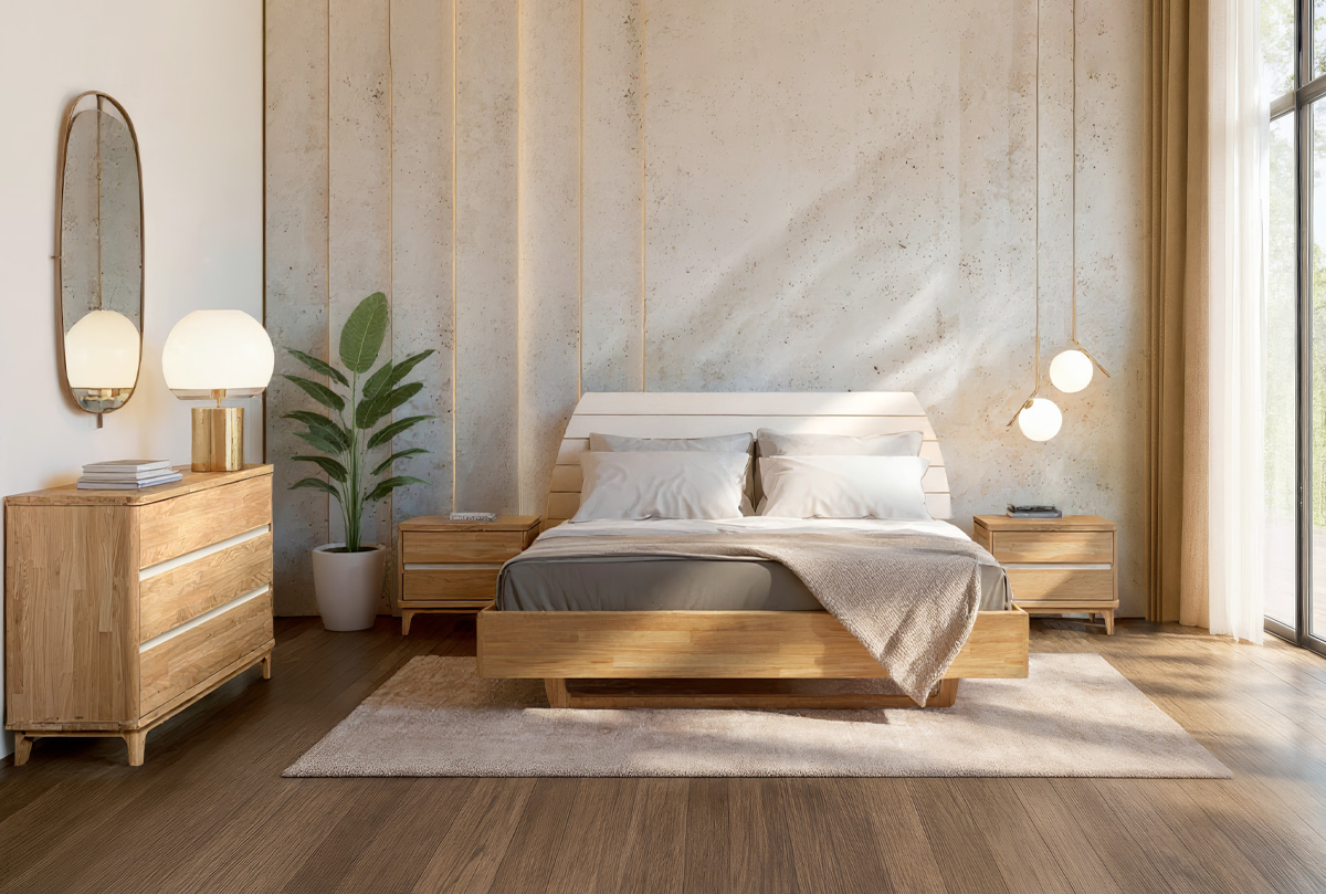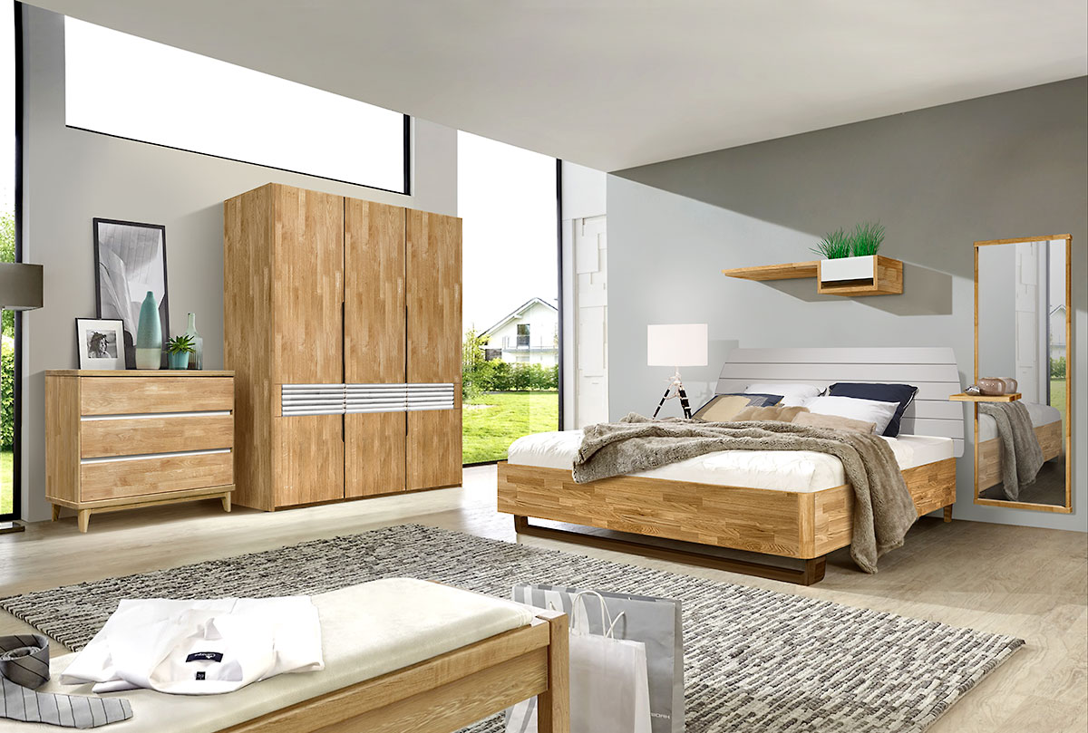 ✅ Кровать изготовлена из комбинации материалов – корпус из массива дуба, изголовье из плиты, покрытой эмалью.