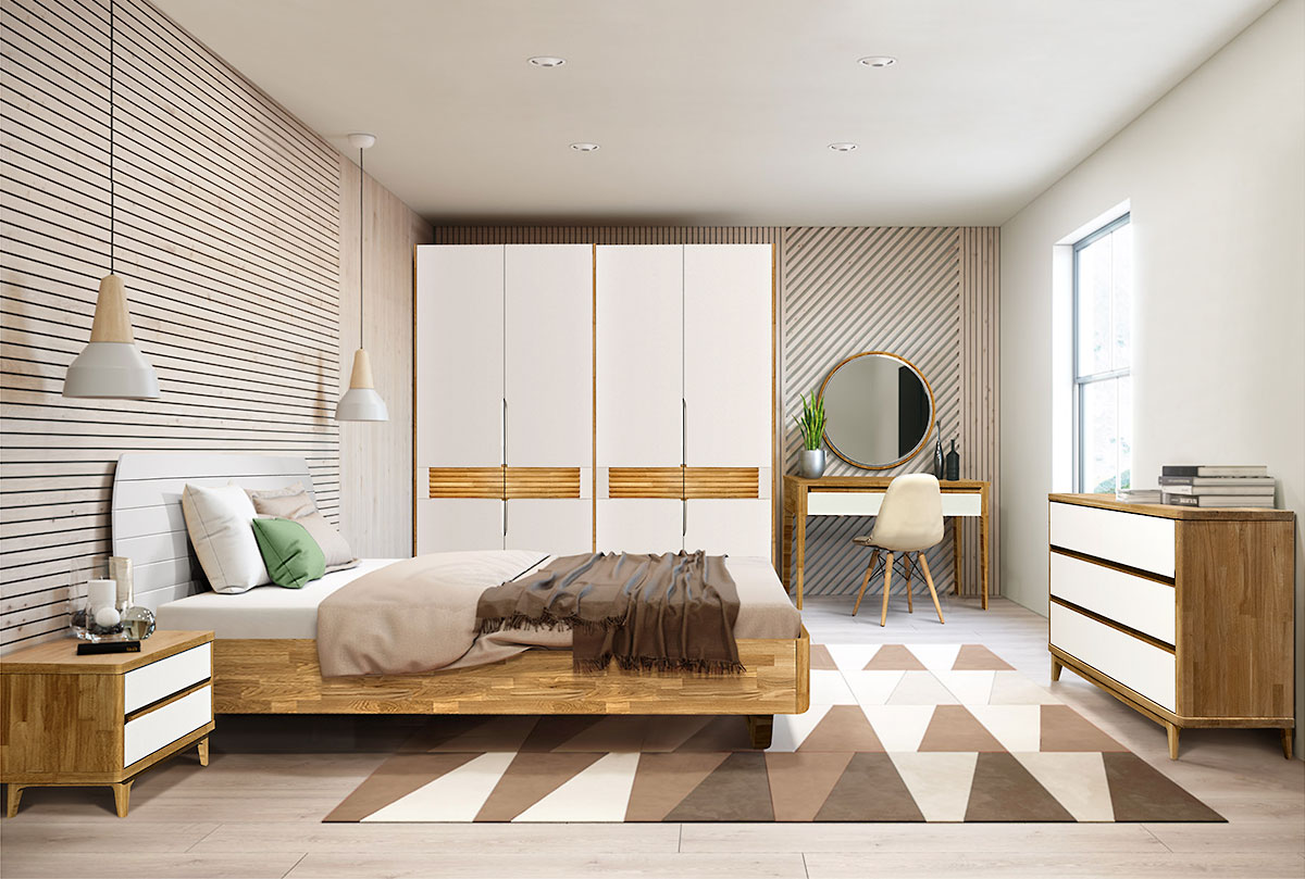 ✅ Кровать изготовлена из комбинации материалов – корпус из массива дуба, изголовье из плиты, покрытой эмалью.