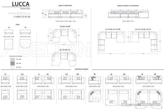 Хотите внести в свой интерьер нестандартности и свежести или подбираете диван, который будет не только красивым, но и комфортным? Тогда идеальным выбором будет коллекция мягкой мебели «Lucca» (Лука). Широкая вариативность модулей коллекции позволяет собрать вашу уникальную комплектацию. В коллекции есть модули прямолинейной формы, а также округлые, которые выглядят необычно и современно. Идеально подобранные слои наполнителя делают посадку приятной, а отдых незабываемым. Подушки подстраиваются под форму тела и обладают отличными амортизационными свойствами. Невысокая задняя стенка дивана позволяет расположить его в центре комнаты, не перегружая интерьер. Диван установлен на небольшие, утопленные вглубь опоры, которые визуально приподнимают его и создаётся эффект легкого парения в воздухе.