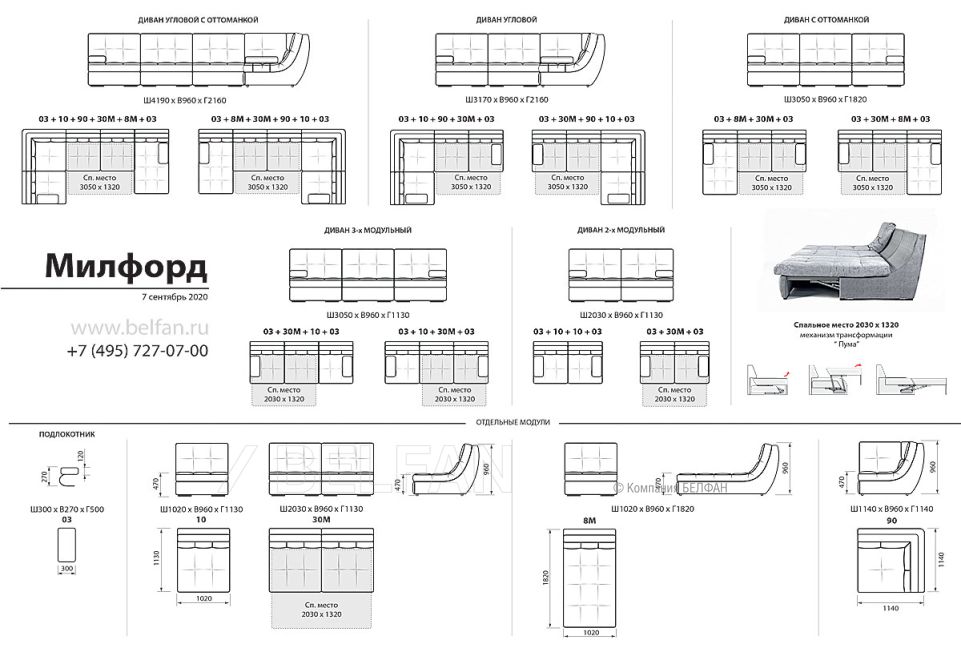 ✅ Комфортный сон для Вас или гостей обеспечивает встроенный механизм для ежедневного сна - «Пума». Размер спального места 3050 х 1320 мм.