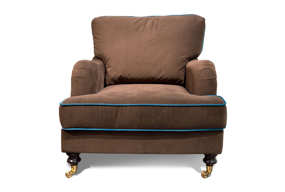 Классический дизайн кресла «Мишель» дополнен яркими оригинальными деталями: изогнутая форма подлокотников, точеные ножки и кант контрастного цвета. Вас покорит невероятная мягкость этого кресла, а благодаря экологически чистому наполнителю Вы можете не беспокоиться за здоровье своих близких. Глубокое посадочное место позволит с комфортом разместить на кресле перед камином. Отличным дополнением к данной модели стали колесики, которые позволят без труда переместить кресло в любую точку Вашего дома.