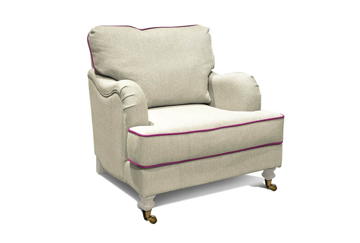 Классический дизайн кресла «Мишель» дополнен яркими оригинальными деталями: изогнутая форма подлокотников, точеные ножки и кант контрастного цвета. Вас покорит невероятная мягкость этого кресла, а благодаря экологически чистому наполнителю Вы можете не беспокоиться за здоровье своих близких. Глубокое посадочное место позволит с комфортом разместить на кресле перед камином. Отличным дополнением к данной модели стали колесики, которые позволят без труда переместить кресло в любую точку Вашего дома.