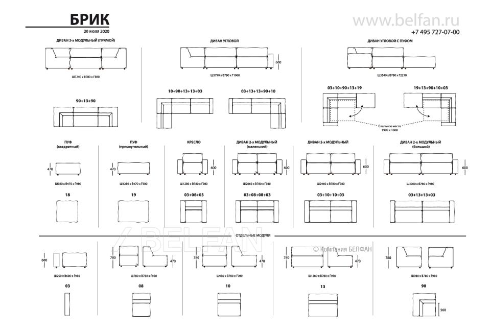 ✅ Секции с модулем 03 (подлокотник) поставляются в собранном виде и разборке не подлежат.