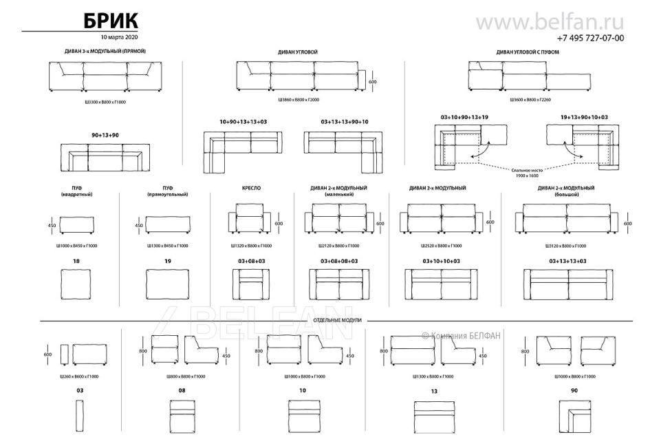 ✅ Секции с модулем 03 (подлокотник) поставляются в собранном виде и разборке не подлежат.