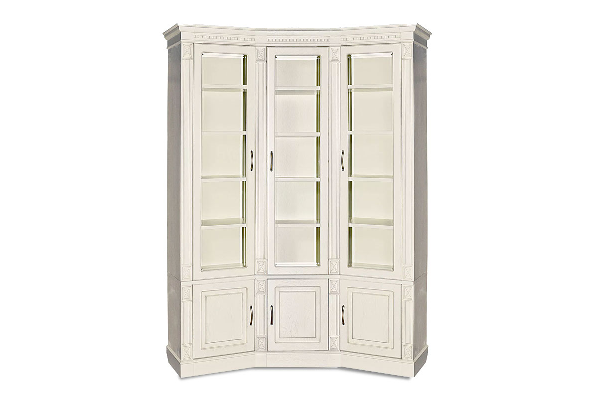 Угловой набор мебели для библиотеки «Верди Люкс 1» обязательно понравится тем, кто не мыслит своей жизни без книг. Благодаря тому, что верхняя секция оснащена стеклянными дверками, Вы сможете без труда найти нужное издание. Полки, регулируемые по высоте, без труда поместят всю семейную библиотеку. Фигурный цоколь и резные пилястры дополняют образ изделия, делая его законченным.