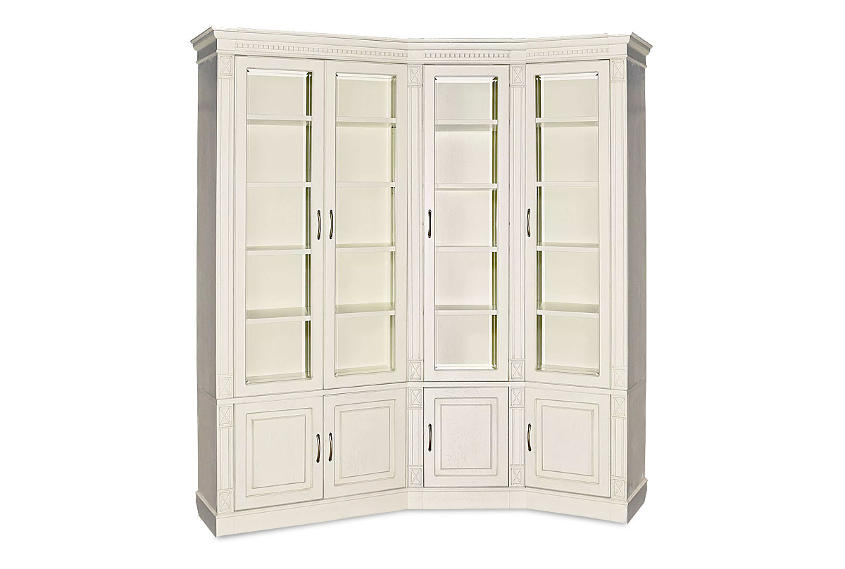 Угловой шкаф для библиотеки «Верди Люкс 2» обязательно понравится тем, кто не мыслит своей жизни без книг. Благодаря тому, что верхняя секция оснащена стеклянными дверками, Вы сможете без труда найти нужное издание. Полки, регулируемые по высоте, без труда поместят всю семейную библиотеку. Фигурный цоколь и резные пилястры дополняют образ изделия, делая его законченным.
