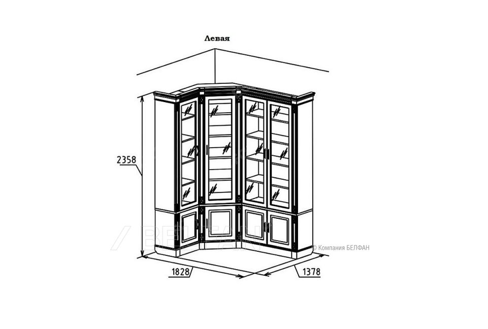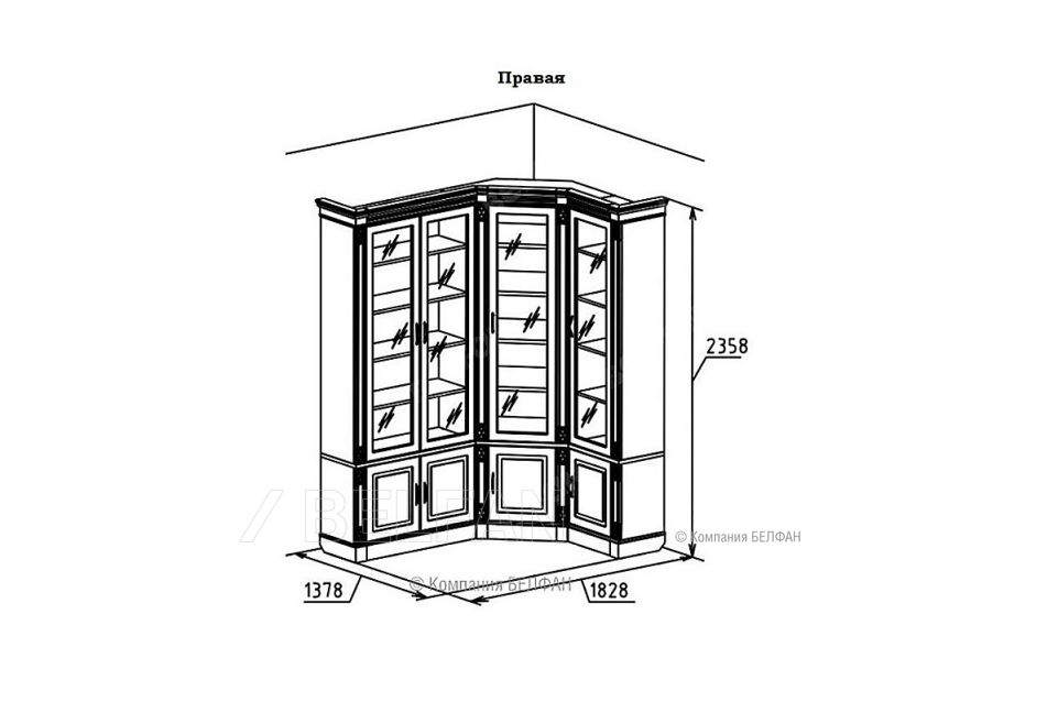 Угловой шкаф для библиотеки «Верди Люкс 2» обязательно понравится тем, кто не мыслит своей жизни без книг. Благодаря тому, что верхняя секция оснащена стеклянными дверками, Вы сможете без труда найти нужное издание. Полки, регулируемые по высоте, без труда поместят всю семейную библиотеку. Фигурный цоколь и резные пилястры дополняют образ изделия, делая его законченным.