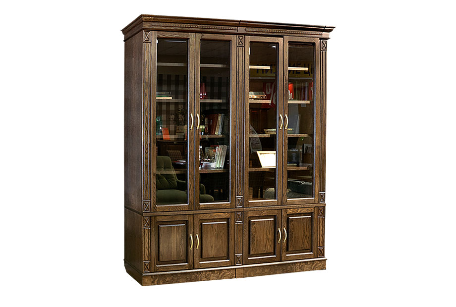 Этот набор мебели для библиотеки из коллекции «Верди Люкс» обязательно понравится страстным книголюбам. Благодаря размерам шкафа, семейная библиотека, собиравшаяся десятилетиями, без труда поместится на его полки, которые регулируются по высоте. Верхняя секция оснащена стеклянными дверками, и Вы сможете без труда найти нужное издание. Фигурный цоколь и резные пилястры дополняют образ изделия, делая его законченным.