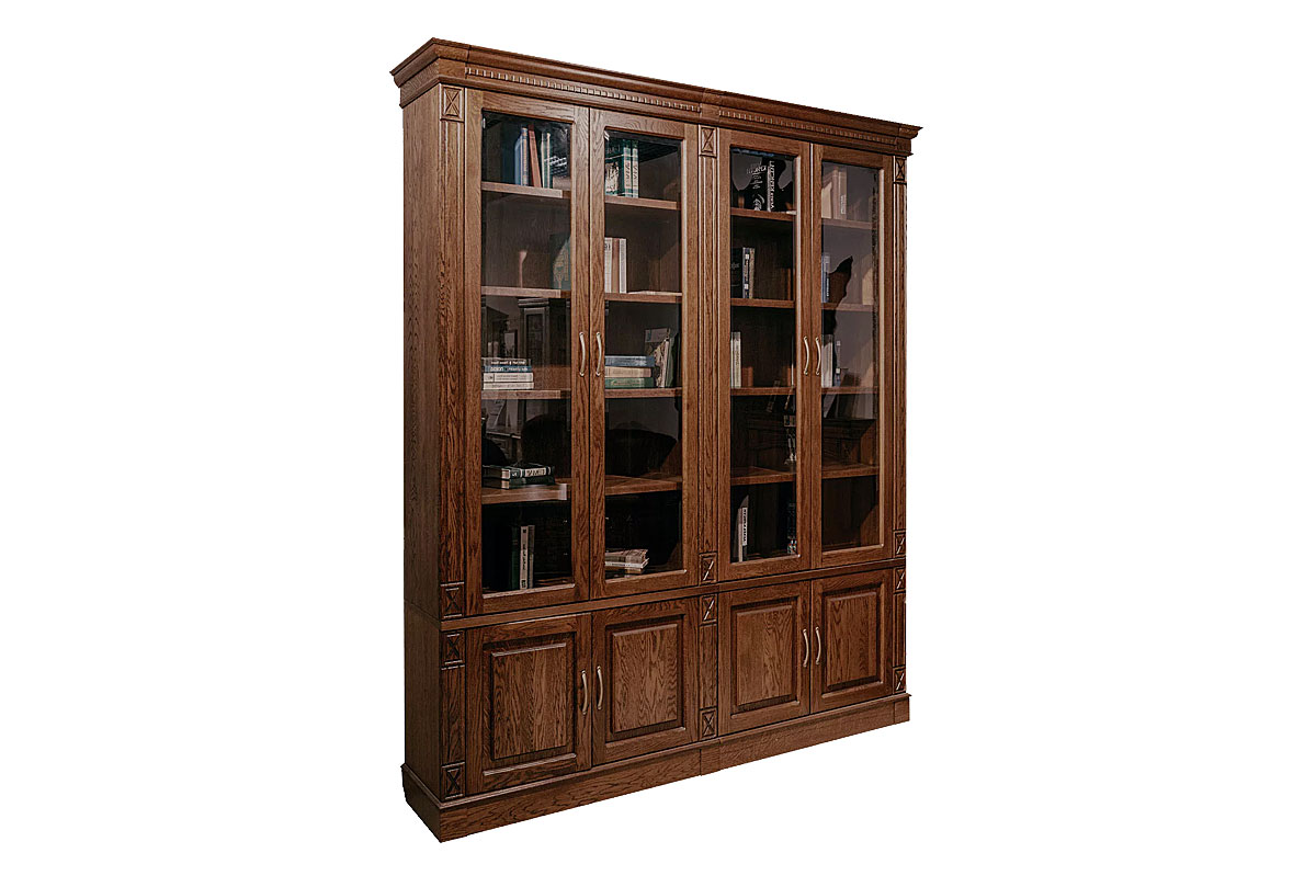 Этот набор мебели для библиотеки из коллекции «Верди Люкс» обязательно понравится страстным книголюбам. Благодаря размерам шкафа, семейная библиотека, собиравшаяся десятилетиями, без труда поместится на его полки, которые регулируются по высоте. Верхняя секция оснащена стеклянными дверками, и Вы сможете без труда найти нужное издание. Фигурный цоколь и резные пилястры дополняют образ изделия, делая его законченным.