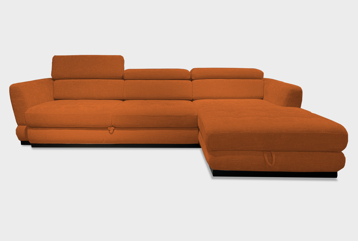 Сдержанность и респектабельность – отличительная черта коллекции мягкой мебели «Орландо». Наличие пиковки втяжками и декоративных швов на сиденье выполняют не только декоративную функцию, но и практичную – утяжки фиксируют слои наполнителя и защищают его от растяжения, что увеличивает срок службы дивана. Регулируемые подголовники дают возможность выбирать наиболее оптимальный вариант поддержки головы. Диван-кровать оснащен впередвыкатным механизмом трансформации для ежедневного использования. При его раскладке не нужно убирать подушки сиденья, что очень удобно. По периметру дивана располагается деревянный декоративный пояс, который добавляет дизайну фундаментальности, а также защищает нижний край царги от загрязнений ткани. Диван угловой возможно сделать в ткани и натуральной коже.