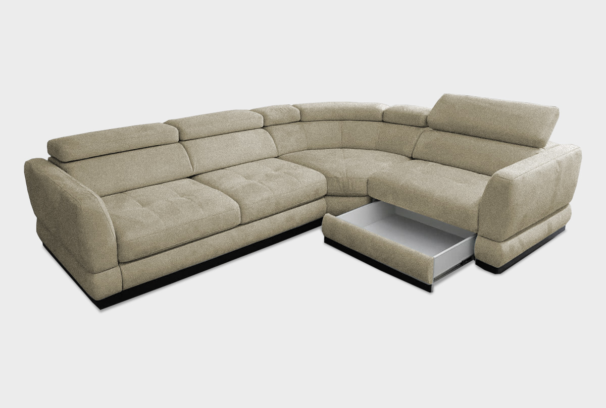 Сдержанность и респектабельность – отличительная черта коллекции мягкой мебели «Орландо». Наличие пиковки втяжками и декоративных швов на сиденье выполняют не только декоративную функцию, но и практичную – утяжки фиксируют слои наполнителя и защищают его от растяжения, что увеличивает срок службы дивана. Регулируемые подголовники дают возможность выбирать наиболее оптимальный вариант поддержки головы. Диван-кровать оснащен впередвыкатным механизмом трансформации для ежедневного использования. При его раскладке не нужно убирать подушки сиденья, что очень удобно. По периметру дивана располагается деревянный декоративный пояс, который добавляет дизайну фундаментальности, а также защищает нижний край царги от загрязнений ткани. Диван угловой возможно сделать в ткани и натуральной коже.