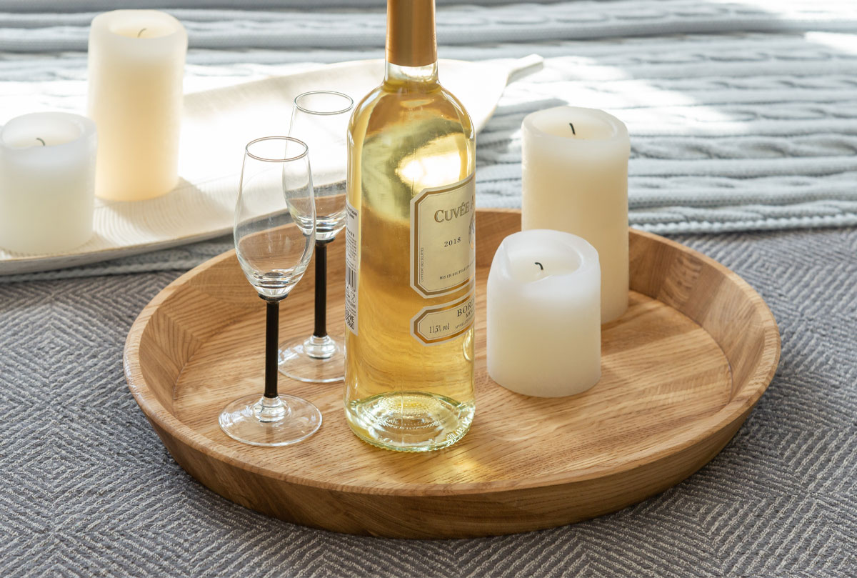 Поднос для бокалов «Art Collection» в цвете «бейц-масло» из массива дуба, 400 x 40 x 350 мм.