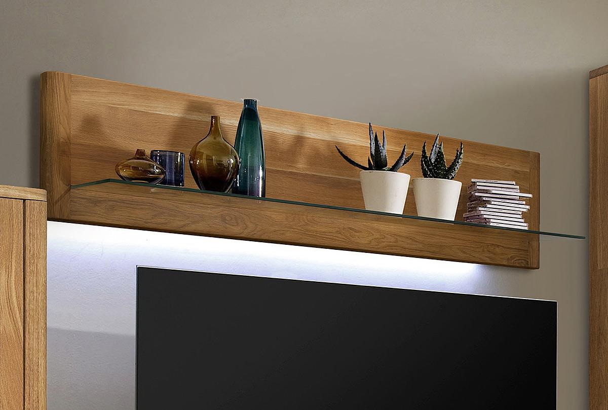 Полка настенная со стеклом «Норд» в цвете «бейц-масло» для квартиры и загородного дома.