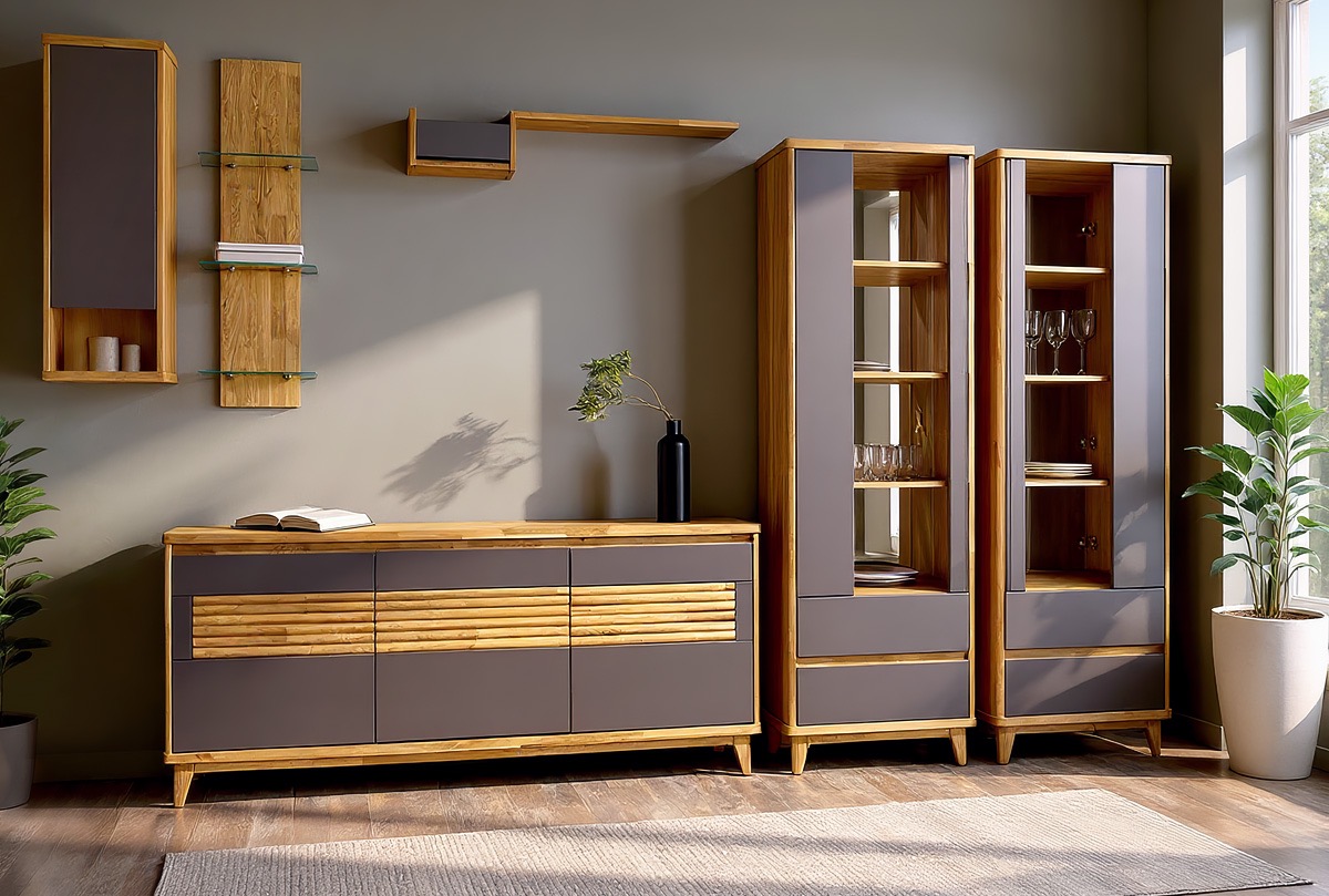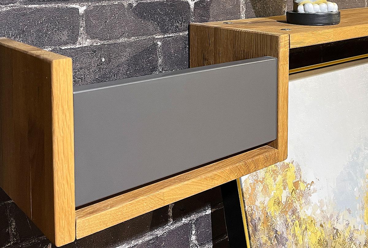 Левая навесная полка с нишей Wallstreet в цвете «к-бейц-масло, вст-антрацит» отлично дополнит интерьер в современном стиле. Ее можно разместить над комодом, кроватью, письменным столом или тумбой под ТВ.