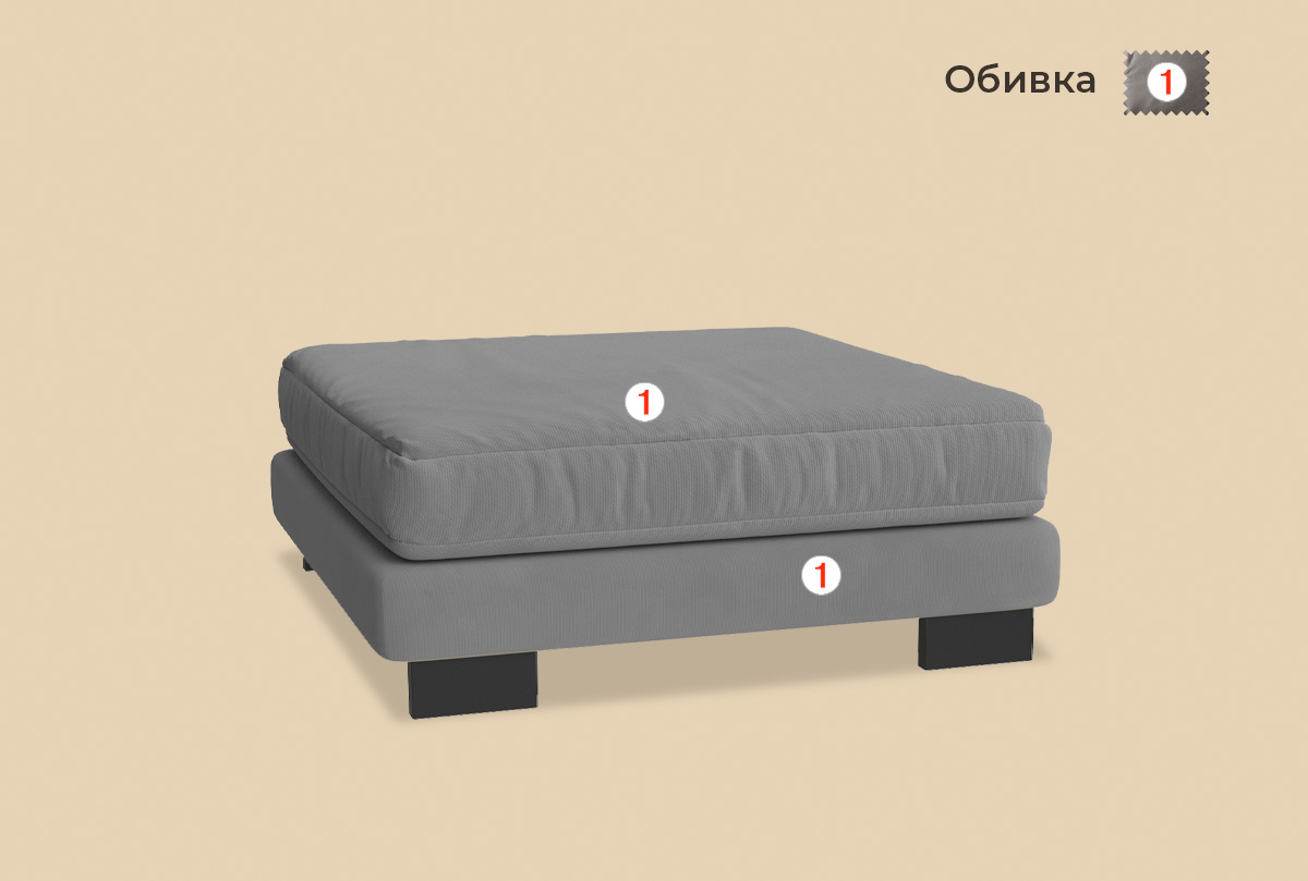 ✅Для пуфа с металлическими опорами: Высота опоры – 127 мм. Высота посадочного места – 477 мм. Высота дивана – 997 мм.