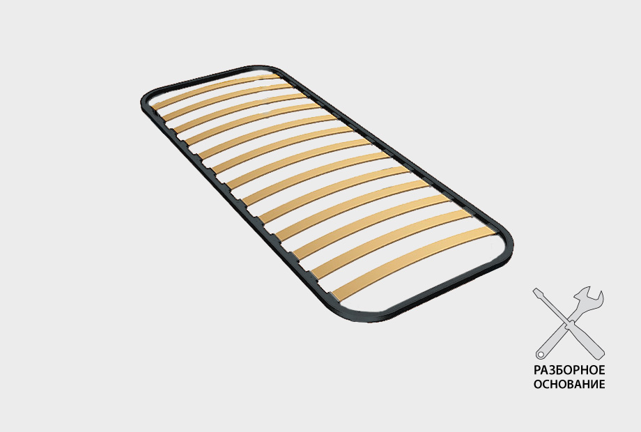 Ортопедическое основание представляет собой металлический каркас, к которому прикреплены планки особой формы из однонаправленной березовой фанеры (клеено-гнутые ламели), расположенные таким образом, чтобы обеспечить максимальный оздоровительный эффект. Ортопедическое основание предназначено для применения в комплекте с ортопедическим матрасом, так как улучшает ортопедические свойства матраса и увеличивает срок его эксплуатации за счет частичного снижения нагрузки на матрас (пружинящего эффекта), а мягкие вставки и накладки не позволят кровати скрипеть, и обеспечат сохранность при транспортировке.