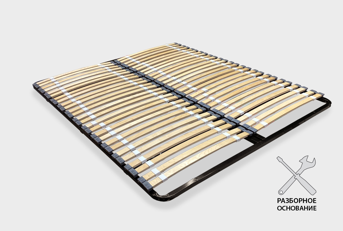 Разборное основание «Эксклюзив Мультиламель» с опорами на металлической раме позволяет максимально точно осуществить поддержку вашего тела, «работая в паре» с ортопедическим матрасом. Благодаря тому, что расстояние между ламелями минимально, каждая пружина матраса будет работать с максимальной отдачей. Это так же позволит увеличить срок службы вашего матраса.